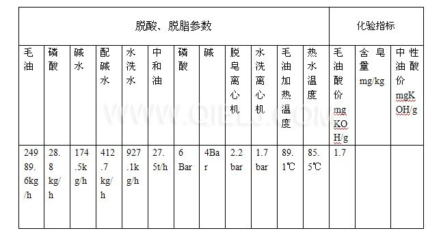 三、脫酸、脫脂參數(shù)